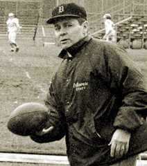 He left the baseball postgiving way to his assistant, recently retired Bob Hannahbefore the 1965 season to become a full-time football assistant.