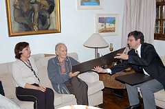 “Como vai a Unicamp?”, perguntou Lattes ao reitor Carlos Henrique de Brito Cruz, que foi à sua casa à frente de um grupo de professores, na tarde do último 15 de outubro, para lhe entregar os títulos de Professor Emérito e de Doutor Honoris Causa que lhe foram conferidos pela Unicamp em 1986. “Preciso pôr gravata?”, pilheriou com os visitantes. Os títulos só foram entregues agora porque Lattes, avesso a homenagens públicas, passou incólume por quatro reitores sem jamais conciliar uma data para a cerimônia. Coube então a Brito Cruz, também físico, fazer a entrega na própria residência de Lattes, num clima informal em que não houve discursos, mas muita conversa amena pontuada por fornadas de pão-de-queijo.