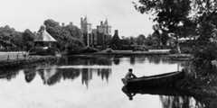 Heslington Hall, a Grade II listed building near Heslington village, was constructed as country house in 1568. In the early 20th century, it was occupied by Nicholas de Yarburgh-Bateson, the 4th Baron Deramore, whose family had owned the property since 1708. The hall was rebuilt in both the 19th and 20th centuries and some original features still remain, including the pendant stucco ceiling over the great hall, some of the courtyard face and the staircase towers at the rear. The gardens were first formally landscaped in the early 18th century, including the gazebo and yews that now comprise The Quiet Place.