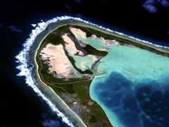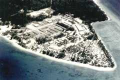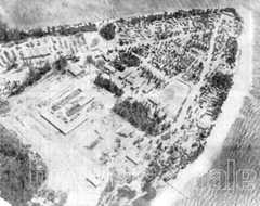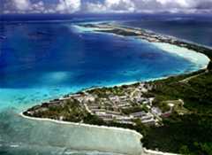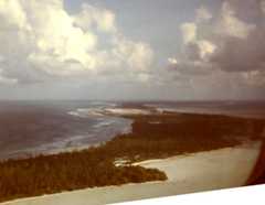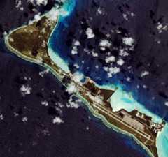 Here's a 2006 photo, looking South: ![]() Here's one looking North: ![]() Here's a good oblique shot. Below: This is a controlled mosaic compiled by the Naval Reconnaissance and Technical Support Center from January 1965 Photography (pre-buildup). The island probably hadn't changed significantly since it was converted into coconut plantations in the 1700s. Many thanks to Kirby Crawford who writes: "The original measures 28" x 42", and is made up of a large number of aerial photos taken from an aircraft. This was one of the few pieces of information we had about DG before we sailed in for our1968 - 70 program." The detail photos (down below - click on the thumbnail for a better version) are of Eclipse Point (now downtown), East Point (the Plantation), and Point Marianne (now the airfield and Camp Justice). Click on these thumbnails for bigger and better versions: Left Above: Looking Southeast. Left Above: Looking South. LeftAbove: Another aerial from the Northeast. From "The Friends of the Chagos" CD (with permission) Originalphoto by 'JETMAN' - "I would have shot it in late 1989 or early 1990 from an SH-2F at an altitude of 10,000 ft. It was about 50 degrees at altitude. Used a Bronica for the negative version. Also have it in Kodachrome 25 shot with my Leica." JETMAN also has a great sense of humor. Read his"Tattler" newsletters for Dodge from that period right on this website! Right Above: A shot from just about due north. Left Above: Looking Southwest.