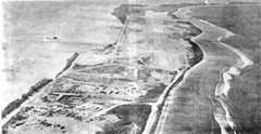 Above:CAG 5 propaganda picture from April 1979. Shows the original configuration of the airfield before RBRM built the "Space Shuttle" runway in the early 1980s. They first built an interim runway (now the taxiway) and then widened the old runway. Below: A Postcard showing the current runway configuration - taken during DESERT STORM. Note the SAC Ramp in the far distance is full of tankers and bombers.