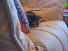 こんなの猫が大好きでしょう。ふかふかで、高い壁に囲まれて落ち着くようです。人間もめっちゃ落ち着くから、わかるぞ。