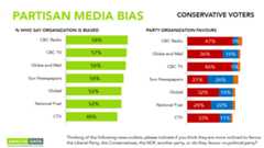Most Canadians believe major media outlets harbour political biases, although the tendency to believe this is quite a bit stronger among Conservative voters than others. Also interesting is that when it comes to translating that feeling of systemic bias into view of individual news outlets, Canadians seem a bit more tentative.