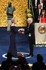 And then I tried to call home where my younger son was, and of course, he doesn’t pick up the phone. So I’m walking around the hotel room just — I couldn’t reach anybody, and I was very excited. And the Nobel Prize Committee, they said, “Oh, you sound so relaxed.” I’m a good faker, I guess. And I said, “Oh my goodness, I’m climbing the walls trying to pretend to sound relaxed” — but I was really very excited.