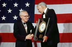 Glenn Seaborg: The most exciting episodes were my years at the Metallurgical Laboratory working on the atomic bomb. The stakes were so high. We thought that Hitler’s Germany was ahead of us, that we were in a losing race and we knew, of course, what that would mean if Hitler got the atomic bomb. So we worked six days a week and five nights for meetings. I took Sundays off to play golf in order to keep going. That was certainly the most exciting part of my life. In terms of discoveries, I would have to rate the discovery — i.e., the synthesis and identification — of plutonium and all if stands for. It’s the explosive ingredient for the atomic bomb, it’s one of the nuclear fuels used in nuclear power reactors. Perhaps my biggest scientific contribution was changing the periodic table. That is what they call the actinide concept — placing the heaviest elements in a separate row at the bottom of the periodic table, hence changing the whole form of the periodic table from the original concept of the great Russian chemist Dmitri Mendeleyev.