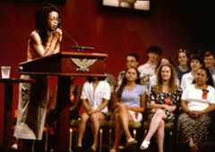 Lauryn Noelle Hill was born in East Orange, New Jersey, and grew up in nearby South Orange. From an early age, Lauryn was fascinated by music. Her father, a computer consultant, and her mother, a teacher, were both musical, and her older brother, Malaney, played a number of instruments. The young Lauryn Hill enjoyed school, sports and other activities, but music was an exceptional passion. She spent hours on end listening to records in her room, absorbing the classic soul music of the ’60s and ’70s. She performed at every opportunity; at age 13 she appeared as a contestant onShowtime at the Apollo. With the support of her parents, she pursued singing and acting professionally in her early teens, appearing on local television and auditioning for film roles in nearby New York City.