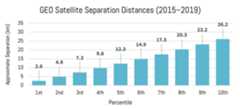 How far apart are satellites in GEO during normal operations? The median distance between satellites, according to an analysis of all GEO satellites included in theSpace-Track.orgcatalog, is approximately 0.28° or about 207 km. Since not all satellites are included in the U.S. Air Force’s space object database—the 18th Space Control Squadron does not provide orbital data for classified U.S. satellites, for example—this methodology likely over-approximates separation distances.