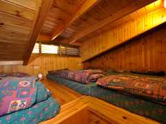 Upper Level (Children’s Gallery):A low-ceilinged gallery with a dormer window, wooden floor, four mattresses, a TV set, and an independent AC system.