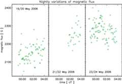 We present UVES/VLT observations of the nearby flare star CN Leo covering the Wing-Ford FeH band near 1 μ m with high spectral resolution. Some of the FeH absorption lines in this band are magnetically sensitive and allow a measurement of the mean magnetic flux on CN Leo. Our observations, covering three nights separated by 48 hours each, allow a clear detection of a mean magnetic field of Bf ≈ 2.2 kG. The differential flux measurements show a night-to-night variability with extremely high…