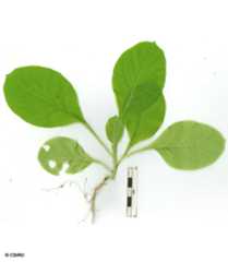 Cotyledonsovate-orbicular, about 4-5 x 3-5 mm.Venation, including the midrib, not obvious. First leaves soft and delicate,spathulate, base veryattenuate, clothed in long translucent hairs. At the tenth leaf stage: leaf bladeobovate, tapering gradually to thepetiole. Both the upper and lower surfaces clothed in erect translucent hairs. Lateral veins 5 or 6 on each side of themidrib. Stems and petioles densely clothed in erect translucent hairs.Seed germination time 13 days.