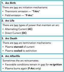There are a vast number of different arc “animal names” due to arcs being named as they were observed across different applications and industries during the industrialization of electricity. This is similar, however, to the names of “Puma,” “Mountain Lion,” and “Cougar” being given to the same big cat species depending on where and by whom it was first encountered. Further complicating the understanding of arcs is the frequent association with “sparks,” which do not occur within the power contact cycle!