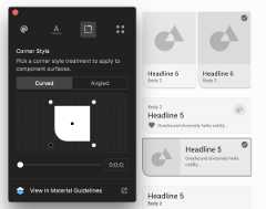 After fonts, you can pick a shape motif (round or angled), set all the corner angles or radii individually, and pick the number of corners. The shape gets automatically applied to some action buttons and cards, but of course you can go in and tweak whatever you want. Finally, you can pick from several pre-baked system icon sets.