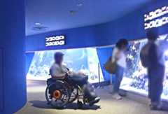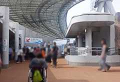 名古屋港水族館入り口にはスロープを上ったり、エレベーターであがったり。