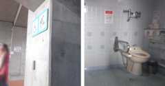 メインプール観覧席の下に車いす対応トイレが設けられていました。
