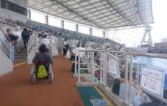 車いす等の観覧スペースは広範囲に設けられいましたが、さらにポールで確保されていたエリアに誘導していただけました。