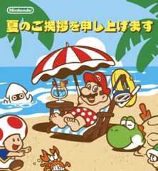 任天堂には、近年この時期になると、暑中見舞いとして、マリオの画像をユーザーに送る風習がある。マリオが衣服という呪縛から放たれ、解放感をもって夏を涼む画像がおなじみだ。これらの画像は単純に涼しげであるほか、さまざまなタイプの画像が用意され、スマートフォンやPC向けの待ち受け画面に設定することも可能である。サービス精神旺盛だ。