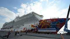 那覇に初めて寄港するプレミアム客船「ゲンティン・ドリーム号」=4日午後4時26分、那覇港新港ふ頭 ...那覇に初めて寄港するプレミアム客船「ゲンティン・ドリーム号」=4日午後4時26分、那覇港新港ふ頭 アジア最大級のプレミアム客船「ゲンティン・ドリーム号」(15万3千トン、乗客定員3400人)が4日午後3時半ごろ、那覇港新港ふ頭に初寄港した。中国や香港などから約2700人の乗客が沖縄を訪れ、国際通りなど県内各地の観光施設へ向かった。 同船は5日午前1時に同ふ頭を出航する。10月まで香港と中国の広州をそれぞれ母港として、那覇港と宮古島の平良港へそれぞれ28回寄港する予定。【琉球新報電子版】