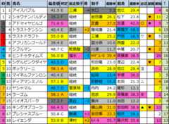 | 1 | 1 | ホウオウプロサンゲ | 38.6 | E | 佐々木 | -2 | 吉田隼 | 17.6 | 矢作 | 21.6 | A | テ | 1 | 2 | ||
