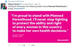 - On September 18, 2015,Hillary Clinton sent the following tweet about protectingfunding for Planned Parenthood: