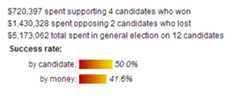 TheCenter for Responsive Politics analyzed the success of 2012 general election cycle spending:[19]