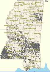 Oil and natural gas wells in Mississippi as of May 2017 (click to enlarge)