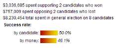 Open Secrets also analyzed the success of 2012 general election cycle spending, as follows:[8]