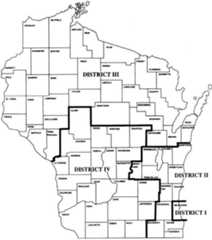 District IV of theWisconsin Court of Appeals covers 24 counties in southwestern and centralWisconsin.[1]