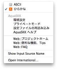 すっかりマニアック路線に話が移ったので、さらにマニアックな文字入力アプリの紹介をさせてください。「SKK」という日本語入力エンジンをご存知でしょうか? 「Simple Kana to Kanji conversion program」の略で、元々Emacsというエディタで動くように開発されていた日本語エンジンです。これをMacに移植して、MacらしいGUIで利用できるようにしてくれるのが「AquaSKK」というアプリケーションです。