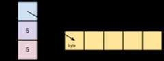 Our variables, created earlier bymake([]byte, 5), is structured like this: