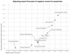 These results are consistent withour previous finding that experts tended to overestimate the probability of negative events for democracy. We therefore follow the procedure developed in that report to adjust expert forecasts taking this pessimism bias into account: