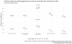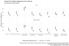 We find no evidence of increasing support for political violence over time (see appendix). We thus focus on how support for violence varies by target, actor, and the action in question.