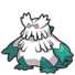 The sprouts on its back grow into great shafts of ice when this Pokémon Mega Evolves into Mega Abomasnow.[1] Its fur becomes longer and shaggy over its entire body, particularly around its head. The green remnants of its buds surround the base of the large icicles on its back, while white fur covers the middle. Using its ice shafts, Mega Abomasnow can conjure blizzards of−22 degrees Fahrenheit.