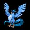 The magnificent, seemingly translucent wings of this legendary birdPokémon are said to be made of ice.(Pokémon Red, Silver, or Crystal inserted) One of the legendary birdPokémon, it chills moisture in the atmosphere to create snow while flying.(Pokémon Blue, Gold, or Yellow inserted)