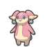 Audino is a bipedal, pink-and-creamPokémon with oval, blue eyes. The top of its head, its back, and arms are pink, while the lower half of its face, body, ears are cream-colored, as well as its front and fingers. The patterning of pink and cream on its chest resembles a jacket. There are three digits on its hands and two on its feet. It has a puffy, white tuft for a tail. Audino has floppy ears with thin, curled extensions on the underside. It can use these ears as radars, and it has an incredible hearing ability.