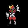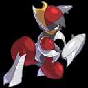 Bisharp is a bipedal, humanoidPokémon. It has a round, red and black head, similar to a war helmet, topped with a golden, double-headed axe blade with white edges. The helmet shrouds most of its yellow-and-black face, although its triangular eyes are visible. Resembling shoulder pads, Bisharp's red shoulders project slightly over its arms and have a thin yellow line where they meet its black torso. It has white, metallic hands that resemble gloves, with retractable, sharp blades attached. Encircling its torso are two blades, which create the impression of a ribcage. Its thighs are red and become progressively thinner as they connect to the knee. Both of its feet are metallic and split down the middle, resembling cloven hooves. These hooves are also similar to steel war boots or possibly leggings.