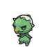 Capsakid is a short, green, bipedal plant Pokémon with no arms and a very short, stubby tail. It has a four-leaved dark green collar on its neck. Its head has a white, round cap radially split into six at the rim. This cap resembles an egg shell or thecalyx found on fruits, and has a small, bulbous green top. Its face has black eyes and an orange coloration on the tip of its beak-like mouth, which also contains a single front tooth on the upper jaw.