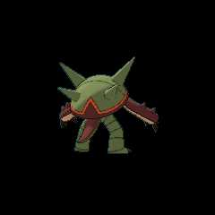 Mega Chesnaught's outer shell and body experience a significant increase in defensive capabilities due to Mega Evolution. The fur on its body has grown to the extent that it functions as an impact-absorbing cloak. With newfound confidence in its ability to withstand any attacks, Mega Chesnaught exhibits a steadfast spirit and a level-headed personality. Its shield-like shoulder armor can transform into destructive weapons. When it removes a piece of its incredibly tough shoulder armor, spikes extend from the shield to form an axe-like weapon with a long handle. The axe head is so heavy that even Mega Chesnaught's brute strength can't easily wield it with one hand. However, gripping it with both hands allows Mega Chesnaught to use this weapon with precision to overpower its foes.[2]
