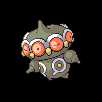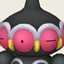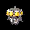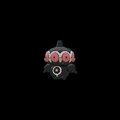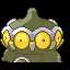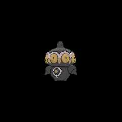 Claydol is a large, blackPokémon that resembles a mud statue with two stubby legs. It has a rounded,oblate-shaped head with a peg-like protrusion extending from the center of the top of its head. Along the circumference of its head are eight round, pink eye-like structures alternating with yellow studs or beak-like protrusions between each "eye". An undulating, white rim runs along the upper edges of the eyes. Its torso features white ring markings, each with a downward extension and yellow dot in the middle. Two smaller orbs sit at its sides like limbs and a peg-like protrusion extends from each orb that is capable of firing various energy beams. These two orbs are not attached to its body but are usually kept floating close by Claydol's psychic powers. Claydol uses the same telekinetic abilities to move and float through the air. It lives inrough terrains.