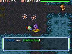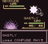 | Haunter charges an orange ball of energy in its hands, then shoots it at the opponent. The opponent's eyes turn red and it gets confused; or, Haunter fires a purple ring of energy from its eyes toward the opponent, confusing it. | |||