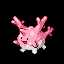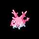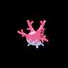 Corsola is a small, pink, roundishPokémon with branch-like growths on its back, which are similar to coral. There is a smaller, blunt horn on its forehead, and it has oval-shaped black eyes and a smiling mouth. It has a light blue underside, which speckles towards the sides. Its four legs and two arms are blunt and stubby.