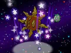 | Solrock focuses its energy and its body starts to glow brightly as its defenses are boosted. | |||