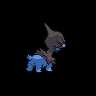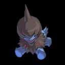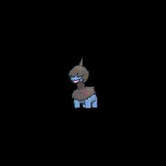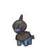 Deino is a small blue quadrupedalPokémon with black fur covering its head and neck, concealing everything but its mouth from view. The fur around its neck also has six purple spots encircling it, which resemble bruises. The hair on the top of its head takes the shape of a single small horn. It also has a short tail that appears to be bitten off. Deino's body is covered in wounds.