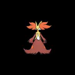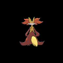 Delphox carries a stick that it uses like a magic wand. When in use, the tip is set alight, and when not in use, the stick is hidden away in its sleeve-like fur. Delphox gazes into the flame at the tip of its wand to achieve a focused state of mind that allows it to see into the future. It can use its psychic power to ensnare its enemies in a fiery vortex capable of reaching 5,400 degrees Fahrenheit (3,000 degrees Celsius).[1] Delphox uses the stick to leave burn marks on the ground. In ancient times, people used the shapes of Delphox's burn marks for divination.
