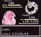 InPokémon Stadium, Disable will cause a Pokémon's rage to build only if successful. The disabled move's PP is not replaced with a "disabled!" message, though attempting to select the move will still result in a notice that the move is disabled.