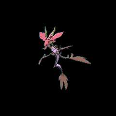 Mega Dragalge grows larger and more ornate, with much more kelp decorating its body. The crest atop its head expands into six flowing, cape-like fronds that are purple on the underside, draping over most of its body. The green antennae on its head expand into antler-like shapes, each of which bears a purple and pink orb in its center. Mega Dragalge's limbs grow longer and more spindly, with several leaf like protrusions along their length. Closer to its neck and tail, the purple of its body transitions to a deeper red color.