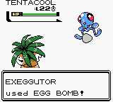 | Exeggutor fires multiple white, egg-shaped masses of energy from the top of its heads at the opponent. The egg-shaped masses of energy explodes on contact. | |||