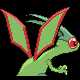 Flygon is aPokémon that resembles a slightly insectoid, bipedaldragon. It is primarily light green and has a pair of large rhombus-shaped wings with red trim, toeless hind legs, and skinny arms with three-clawed hands. Flygon's tail has several dark green stripes and three small green rhombus shapes with red trims at the end. It has large eyes and a pair of green antennae that point back. Its eyes have red covers that prevent sand from getting into them.