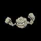 In theAlolaregion, Geodude is made of a magnetic rock with a more silvery appearance. There are areas on Alolan Geodude's body that are especially magnetic and attract iron sand, creating the appearance of black eyebrows and strands of short black hair.[1] Its fingers are fused together, leaving only the thumb and index finger free.