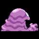 Grimer is a slimy, amorphousPokémon, born from sludge in dirty streams or seabeds that are exposed to lunar radiation. It has two large eyes with beady pupils and a gaping mouth with a gray tongue. While it lacks any visible legs, it does have two arms with three digits on each hand. Its purple sludge body contains a variety of pungent bacteria, which are so potent that it renders soil barren and incapable of supporting plant life. It is constantly oozing a bacteria-rich fluid from all parts of its body. Should it run out of internal germs, Grimer will die. Pieces of it often break off during travel and go on to become new Grimer. When combined with another Grimer, it produces new poisonous compounds.