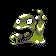 Grimer was brought to Alola to deal with the excess waste generated by the region's increased population. Alolan Grimer eats solid garbage instead of sludge; this new diet has caused its body composition and form to change. Alolan Grimer's body is green with a line of yellow sludge along its lower lip that extends around behind its head, a bright blue tongue, and small black crescent-shaped spaces behind its eyes. It also has two blunt "teeth" in its upper jaw, which are actually crystallized toxins formed by its diet. It is not known how to break down these toxic crystals, but direct contact with them is known to be dangerous. Lethal poisons leak out of Alolan Grimer's body when these crystals fall out. Because it produces and stores toxins within its body, Alolan Grimer does not produce a foul stench like Kantonian Grimer.[1][2]